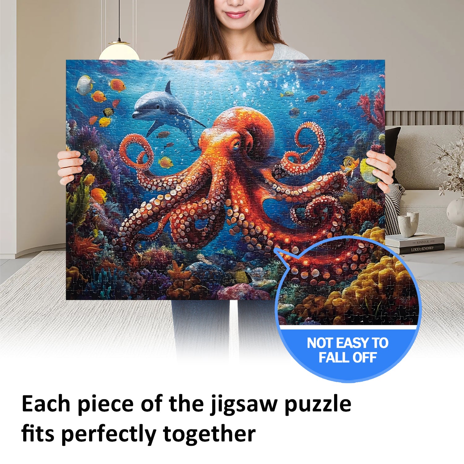 - 1000-teiliges Puzzle für Erwachsene: Fertige Größe: 70 x 50 cm. Die robuste und hochwertige Verpackungsbox enthält ein hochauflösendes Poster als Referenz für das Puzzle mit Oktopus-, Fisch- und Meereslandschaftsmotiv.