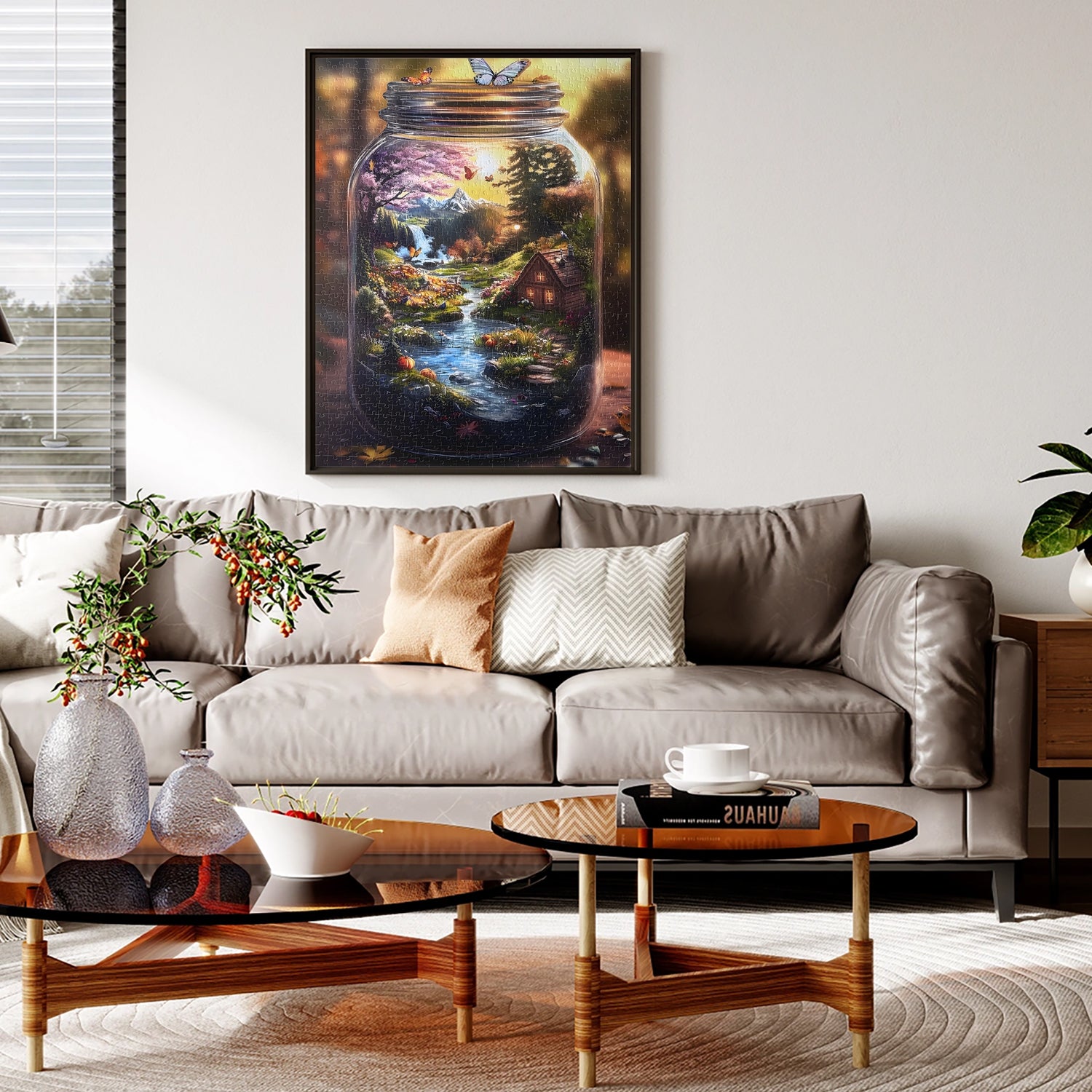 - Puzzle 1000 pièces pour adultes : dimensions finies : 70 x 50 cm. Le carton d'emballage est robuste et élégant, avec une affiche haute résolution pour illustrer le puzzle « Un monde en bouteille, rêve de nature ».